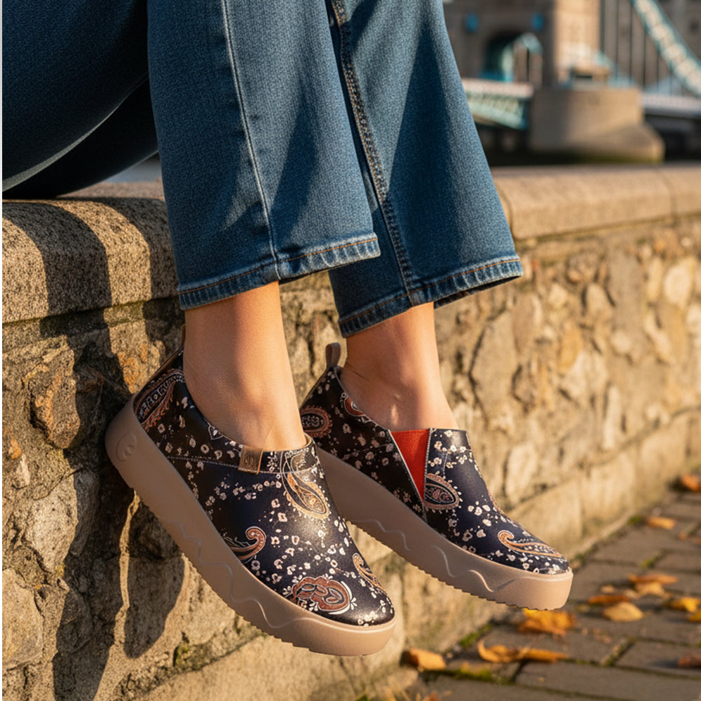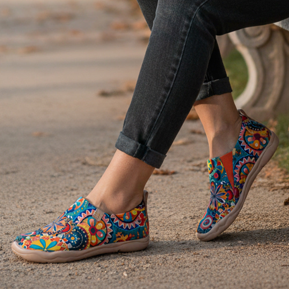 a Spanish designer of uin footwear. He takes the topographicmap of Toledo and other cities in Spain as the inspiration to create themost representative products -Toledo and its family. The ultimate bioniccomfort, the bold upapologising Spanish color painting patterns are uin's answers and approaches for travelers.