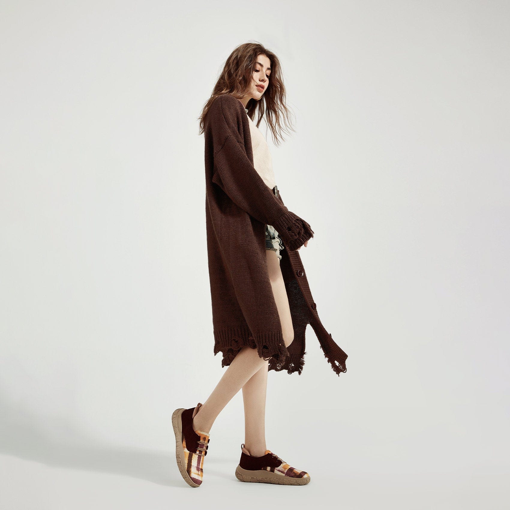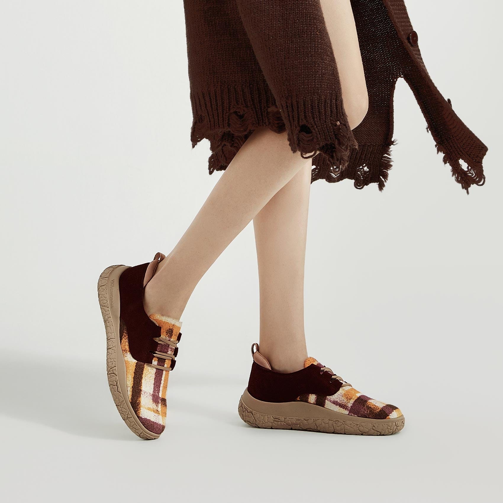 The sole imitates the cracked characteristics of the Bardenas desert terrain, forming a sole with good slip resistance, giving people an immersive feeling. Explore the breathtaking rocky beauty of Bardenas while basking in a warm sunset.