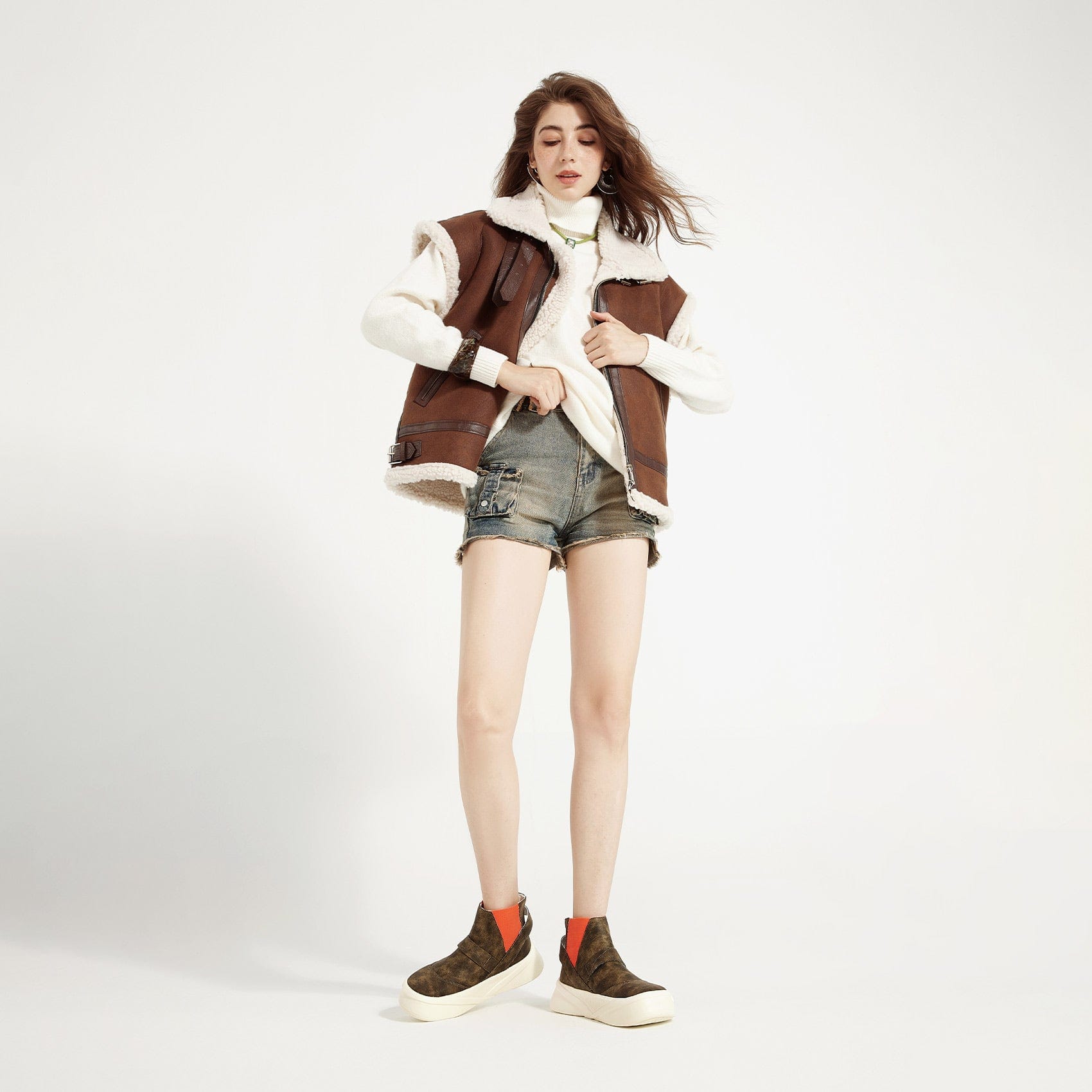 The toe box allows the feet to flex when wearing the shoes without socks, providing flexibility and comfort.