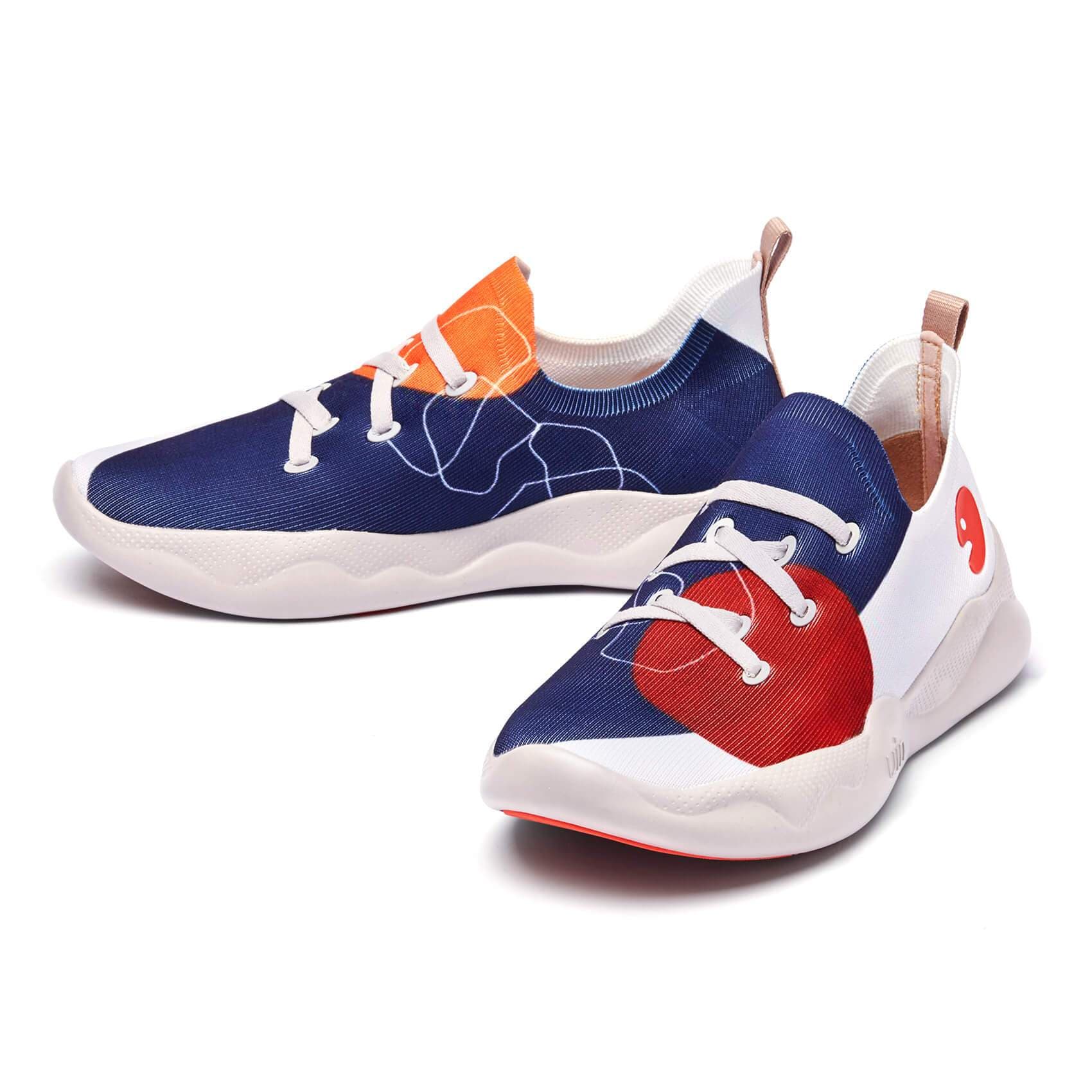 The union is an artistic metaphor of a deep fascination with irregular, asymmetric forms and a blend of vivid harmonized hues. The same basic colors of both shoes presented in the indefinite forms captivate the senses, while an additional, contradistinctive color presented on each shoe creates the modern harmony of sensations.
