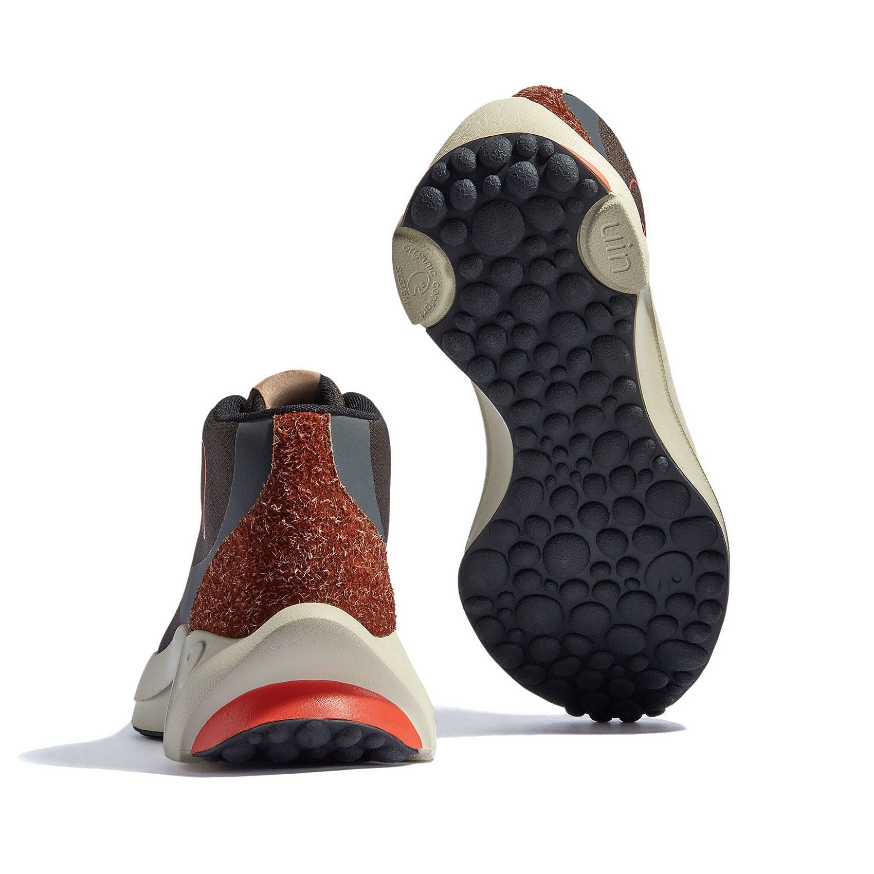 The irregular pebble outsole that extends from the toe to the heel provides better cushioning and resilience. The slip-proof rubber outsole provides excellent grip, easy to deal with all kinds of slippery conditions.