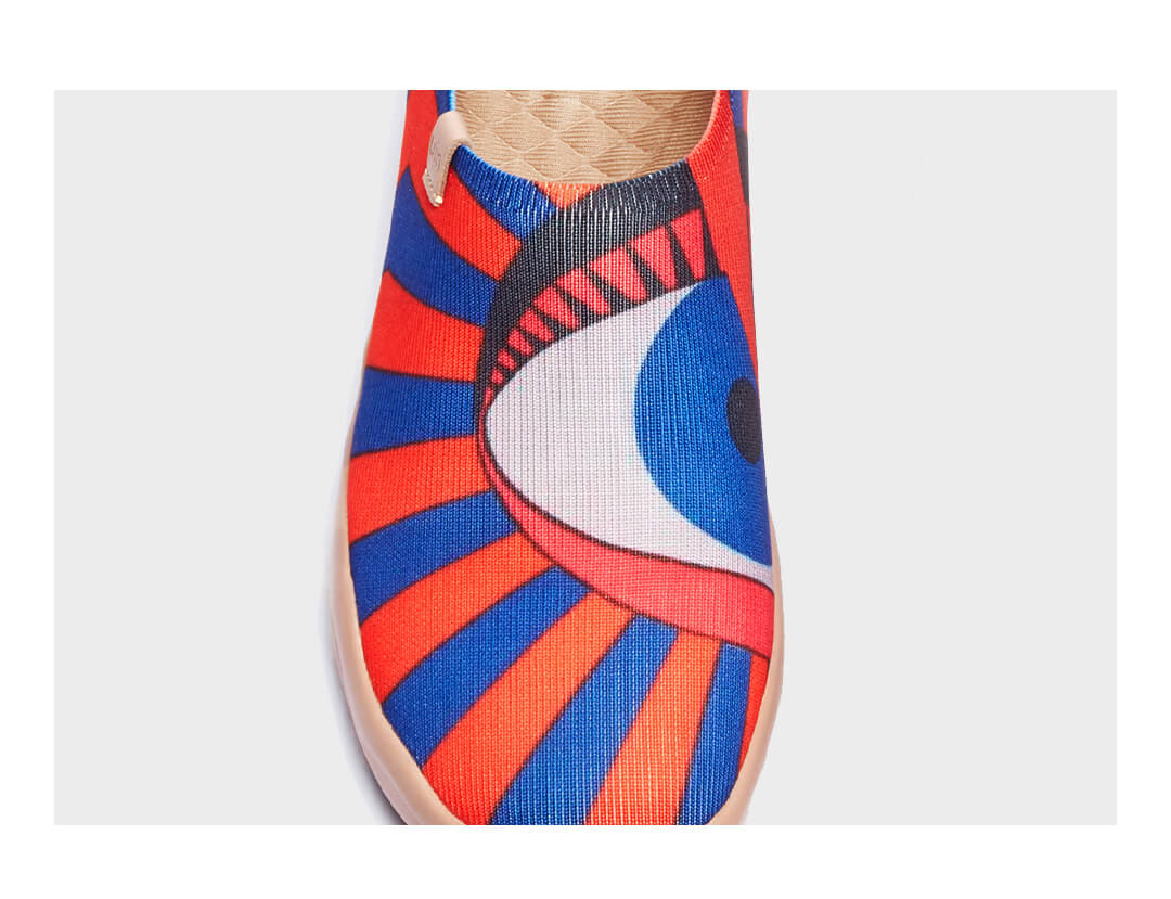 The Eye of Ra or Eye of Re is a being in ancient Egyptian mythology that functions as a feminine counterpart to the sun god Ra and a violent force that subdues his enemies. The Eye is an extension of Ra's power, equated with the disk of the sun. We believe that with the Eye of Sun shoes, you will find the power of the sun within you and express it by wearing uin design.?